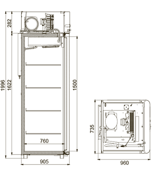 Каталог оборудования Холодильное оборудованиеШкафы холодильныеШкафы морозильные низкотемпературные до -18 °СШкаф морозильный Polair Polair CB107-Gm Alu Шкаф морозильный Polair Polair CB107-Gm Alu Код товара: 062-591 Поделиться: WhatsAppTelegram СравнитьДобавить в КПВ избранное 0 163 200 ₽ В корзину 0 шт Под заказСамовывоз сегодня бесплатно Взять в кредит Купить в лизинг Получить консультацию в WhatsApp Описание Характеристики Отзывы 0 Инструкции 4 Шкаф морозильный Polair Polair CB107-Gm Alu разработан для демонстрации и надежного хранения продуктов на предприятиях общественного питания и торговли. Цельнозаливной корпус выполнен из нержавеющей стали как снаружи, так и внутри (кроме задней стенки), что гарантирует высокую прочность и долговечность конструкции. Алюминиевые профили дверей и верхней панели подчеркивают современный и премиальный внешний вид шкафа. Оборудование рассчитано на работу при температуре окружающей среды до +40 °С и относительной влажности воздуха до 80%, что делает его надежным решением даже в сложных условиях эксплуатации. Основные особенности: Многофункциональная контрольная панель с жидкокристаллическим дисплеем Верхнее расположение агрегата, обеспечивающее удобный доступ к внутреннему объему Поддержка дистанционного мониторинга и записи данных в журнал контроллера (при использовании сетевой карты), а также передача данных через Bluetooth Клапан Шредера и компенсационный клапан с ПЭНом обогрева ПЭН обогрева трубки слива конденсата и ПЭН обогрева дверного проема для предотвращения образования наледи Распашные двери с полностью интегрированными ручками и эластичными магнитными уплотнителями, обеспечивающими максимальную герметизацию Микропереключатель, отключающий вентилятор и включающий подсветку при открытии дверей Встроенная внутренняя подсветка, улучшающая обзор содержимого Регулируемые по высоте ножки и педаль для удобного открывания двери Замок для обеспечения безопасности хранения 4 полки формата GN 2/1 (530×650 мм) с допустимой нагрузкой до 40 кг Толщина теплоизоляции корпуса — 61 мм Изображение товара, представленного на фото, может отличаться от его фактического вида. Показать все Габаритные размеры735×945×1996 ммДиапазон рабочей температурыдо -18 °CДлина735 ммГлубина450 ммВысота1996 ммОбъём700 лМатериал корпусаНержавеющая сталь Тип охлажденияДинамическое Тип управленияМеханическое Расход электроэнергии в сутки12 кВтКоличество полок2 штКоличество дверей1 штЗамокЕсть Тип двериМеталлическая Способ открыванияРаздвижные (купе) Напряжение220 ВХладагентR290 Расположение агрегатаНижнее Габариты в упаковке850×988×2160 ммВес нетто128 кгВес брутто152 кгБрендPolairВсе шкафы морозильные низкотемпературные до -18 °С POLAIRВсе шкафы морозильные низкотемпературные до -18 °С 4 уровня Оставить отзыв Еще никто не оставил отзыв на этот товар Схема POLAIR CB107-Gm Alu.jpgИнструкция на POLAIR CB107-Gm Alu.pdfДекларация о соответствии.pdfСертификат соответствия.pdf Похожие товары Перейти в каталог В наличии 81 843 ₽ Шкаф морозильный МХМ Капри 0,5Н Под заказ 204 518 ₽ Шкаф холодильный низкотемпературный Arkto F1.4-G В наличии 203 066 ₽ Шкаф морозильный Polair CB114-G Под заказ 275 905 ₽ Шкаф морозильный HURAKAN HKN-GX1410BT НовинкаВ наличии 56 070 ₽ Шкаф морозильный со стеклом Haier MSF100 Под заказ 215 610 ₽ Шкаф морозильный Abat ШХн-1,4-01 нерж. В наличии 129 642 ₽ Шкаф морозильный Polair DB107-S Под заказ 136 935 ₽ Шкаф морозильный Polair CB107hd-S С этим 