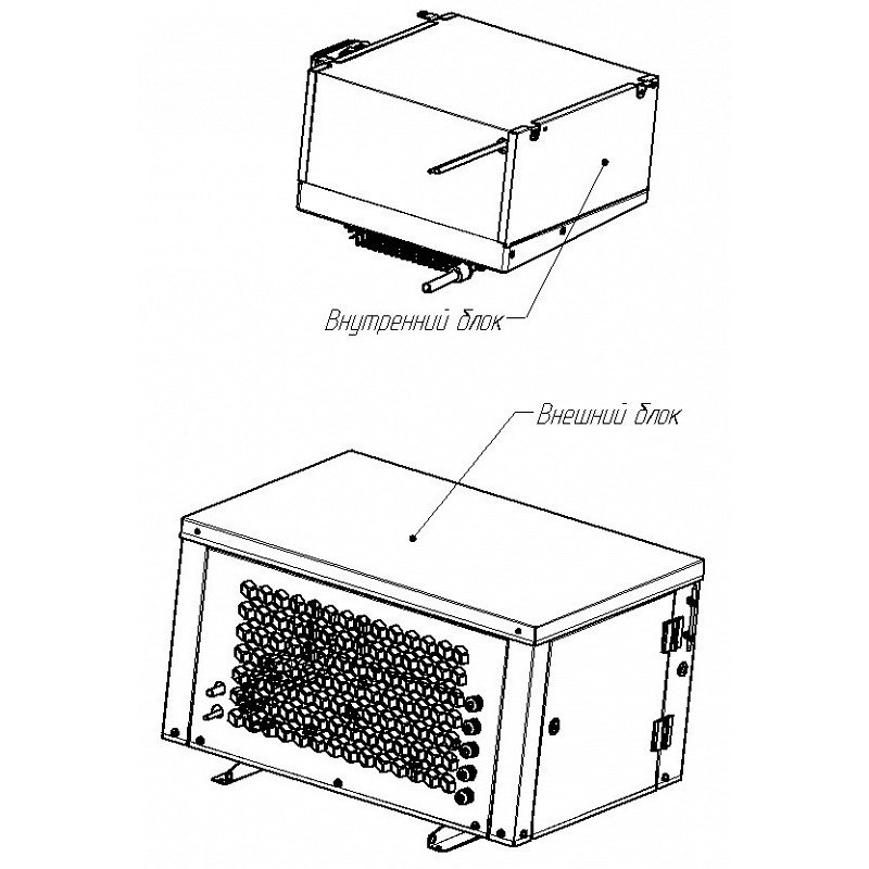 Компрессорно-конденсаторный блок и воздухоохладитель заправлены сухим азотом для защиты от влаги и загрязнений при транспортировке и монтаже.