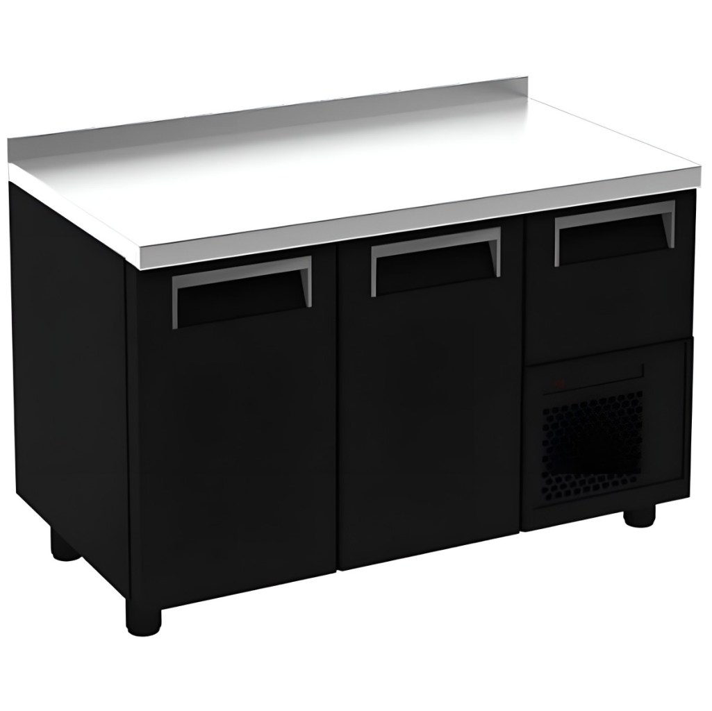 Carboma T57 M2-1 9005-29 корпус черный, с бортом, планка (BAR-250) — это функциональный и эргономичный холодильный стол для баров и кофеен, сочетающий надежность, удобство обслуживания и продуманный дизайн.