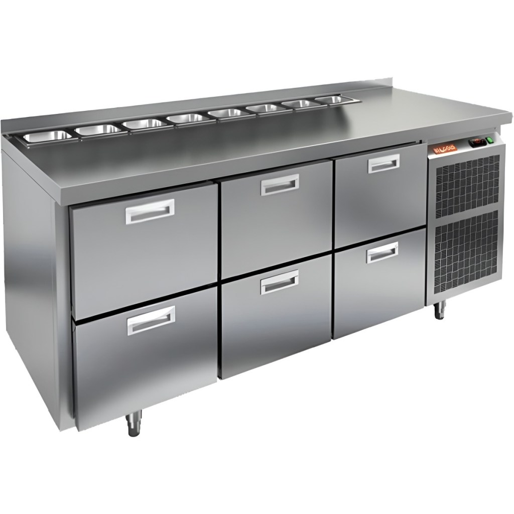 Каталог оборудования Холодильное оборудованиеСтолы охлаждаемыеСтолы холодильные для салатовСтол холодильный для салатов HiCold SL2-222GN (1/6) без крышки Стол холодильный для салатов HiCold SL2-222GN (1/6) без крышки Код товара: 064-817 Поделиться: WhatsAppTelegram СравнитьДобавить в КПВ избранное 0 255 862 ₽ В корзину 0 шт Под заказСамовывоз сегодня бесплатно Взять в кредит Купить в лизинг Получить консультацию в WhatsApp Описание Характеристики Отзывы 0 Инструкции 1 Стол холодильный для салатов HiCold SL2-222GN (1/6) без крышки предназначен для использования на предприятиях общественного питания и торговли. Он подходит для хранения, обработки и кратковременного охлаждения ингредиентов, применяемых при приготовлении пиццы, салатов, закусок и других блюд. Модель совмещает охлаждаемый объем и рабочую поверхность, что значительно повышает удобство и скорость работы персонала. Корпус и столешница выполнены из прочной и гигиеничной нержавеющей стали, устойчивой к влаге, загрязнениям и механическим повреждениям. Особенности модели: Электронная панель управления — точная настройка температуры. Салат-бар на 8 гастроемкостей — быстрый доступ к ингредиентам. 6 внутренних ящиков — удобное размещение и легкая замена продуктов. Автоматические доводчики дверей — комфортная эксплуатация. Съёмные магнитные уплотнители — герметичность и стабильная температура. Открытая агрегатная часть — лёгкое обслуживание. Регулируемые ножки — установка на любой поверхности. Глубина гастроемкостей до 150 мм, столешница и теплоизоляция — 50 мм. Высота борта — 50 мм — защита рабочей поверхности. HiCold SL2-222GN (1/6) без крышки — универсальное и функциональное решение для профессиональной кухни, позволяющее оптимизировать рабочие процессы и повысить производительность за счет удобного хранения и быстрого доступа к ингредиентам.Изображение товара, представленного на фото, может отличаться от его фактического вида. Показать все Габаритные размеры1835×700×850 ммДиапазон рабочей температурыот +2 до +10 °CРасположение агрегатаБоковое Материал столешницыНержавеющая Тип столаС ящиками Объём505 лТип гастроемкостейGN 1/6 Количество ящиков6 штНапряжение220 ВМощность0,5 кВтТип охлажденияДинамическое Тип оттайкиАвтоматическая СтолешницаС бортом Габариты в упаковке2000×850×1000 ммВес нетто130 кгВес брутто180 кгБрендHicold Оставить отзыв Еще никто не оставил отзыв на этот товар Декларация о соответствии.pdf Ранее просмотрено Под заказ 204 472 ₽ Стол холодильный для салатов HiCold SL1-22SN (1/3) с крышкой Под заказ 166 222 ₽ Стол холодильный для салатов HiCold SL1-11GN (1/3) М с крышкой Под заказ 259 642 ₽ Стол холодильный для салатов HiCold SL1-222SN (1/3) с крышкой Под заказ 98 272 ₽ Стол холодильный для салатов HiCold SLE3-1GN О З без крышки Под заказ 201 682 ₽ Стол холодильный для салатов HiCold SL2-22GN (1/6) О без крышки Под заказ 320 392 ₽ Стол холодильный для салатов HiCold SL1-2222GN (1/3) с крышкой Под заказ 140 481 ₽ Стол холодильный для салатов HiCold SL2-11GN (1/6) О без крышки