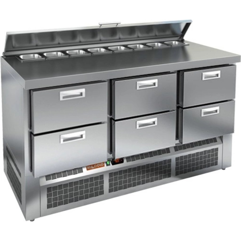 HiCold SLE2-222GN (1/6) О с крышкой — это функциональный и вместительный салатный стол, который идеально подходит для профессиональных кухонь с интенсивной загрузкой. Он сочетает в себе надежность, удобство и продуманную конструкцию для максимальной производительности на рабочем месте.