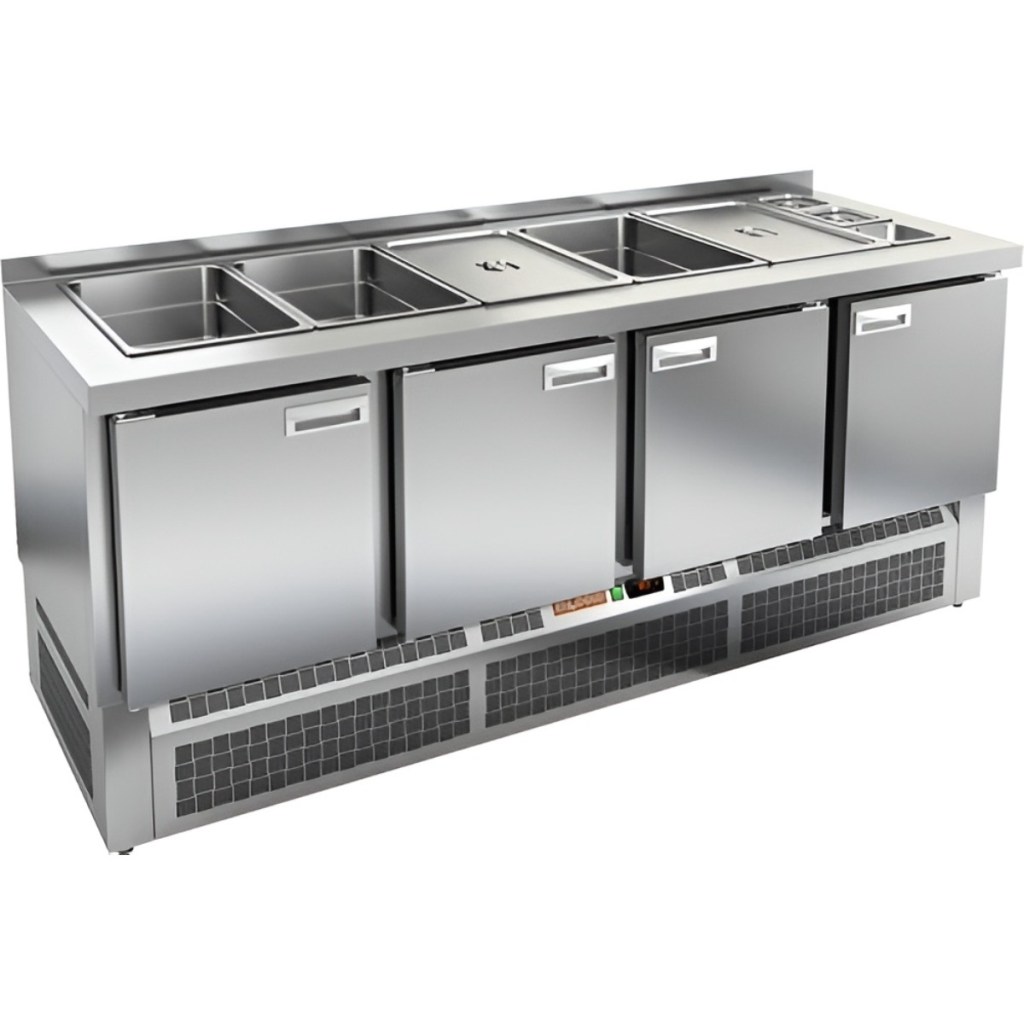 Каталог оборудования Холодильное оборудованиеСтолы охлаждаемыеСтолы холодильные для салатовСтол холодильный для салатов HiCold SLE3-1111GN без крышки Стол холодильный для салатов HiCold SLE3-1111GN без крышки Код товара: 064-924 Поделиться: WhatsAppTelegram СравнитьДобавить в КПВ избранное 0 174 502 ₽ В корзину 0 шт Под заказСамовывоз сегодня бесплатно Взять в кредит Купить в лизинг Получить консультацию в WhatsApp Описание Характеристики Отзывы 0 Инструкции 2 Стол холодильный для салатов HiCold SLE3-1111GN без крышки предназначен для использования на предприятиях общественного питания и торговли. Он сочетает в себе функции охлаждения и хранения ингредиентов, используемых при приготовлении салатов, закусок, сэндвичей и других блюд, требующих кратковременного поддержания температуры. Модель обеспечивает удобный доступ к продуктам и позволяет повару работать максимально эффективно. Корпус и столешница изготовлены из нержавеющей стали, что гарантирует долговечность конструкции, устойчивость к коррозии и соответствие санитарным нормам. Особенности модели: Электронная панель управления позволяет точно настраивать температурный режим Четыре вместительные внутренние полки формата GN 1/1 обеспечивают удобную организацию пространства Вместимость салат-бара — 5 гастроемкостей формата GN 1/1 и 3 гастроемкости формата GN 1/6 Поддерживается использование гастроемкостей глубиной до 100 мм Двери оснащены автоматическими доводчиками с фиксацией в открытом положении Легкозаменяемые магнитные уплотнители обеспечивают герметичность и простоту обслуживания Открытая агрегатная часть упрощает доступ для сервисного обслуживания Регулируемые по высоте ножки позволяют адаптировать стол под любую рабочую поверхность Толщина столешницы и теплоизоляции составляет 50 мм, что гарантирует прочность и энергоэффективность Наличие борта повышает гигиеничность работы и облегчает поддержание чистоты на кухне. HiCold SLE3-1111GN без крышки — это надёжный и практичный салатный стол, который сочетает в себе охлаждаемый отсек и удобную рабочую зону. Модель идеально подходит для интенсивной эксплуатации в профессиональных кухнях, обеспечивая быстрое обслуживание и надёжное хранение ингредиентов.Изображение товара, представленного на фото, может отличаться от его фактического вида. Показать все Габаритные размеры1970×700×1055 ммДиапазон рабочей температурыот +2 до +10 °CРасположение агрегатаНижнее Материал столешницыНержавеющая Тип столаС дверьми Тип двериГлухая Объём570 лКоличество дверей4 штТип гастроемкостейGN 1/1, GN 1/6 Размер полки530×325 (GN 1/1) ммНапряжение220 ВМощность0,46 кВтТип охлажденияДинамическое Тип оттайкиАвтоматическая СтолешницаС бортом Вес нетто133 кгВес брутто189 кгБрендHicold Оставить отзыв Еще никто не оставил отзыв на этот товар Паспорт на HICOLD SLE3-1111GN.pdfДекларация о соответствии.pdf Ранее просмотрено Под заказ 88 923 ₽ Прилавок холодильный Марихолодмаш «Мясной» ПХС-1,55/0,85 (встроенное холодоснабжение)