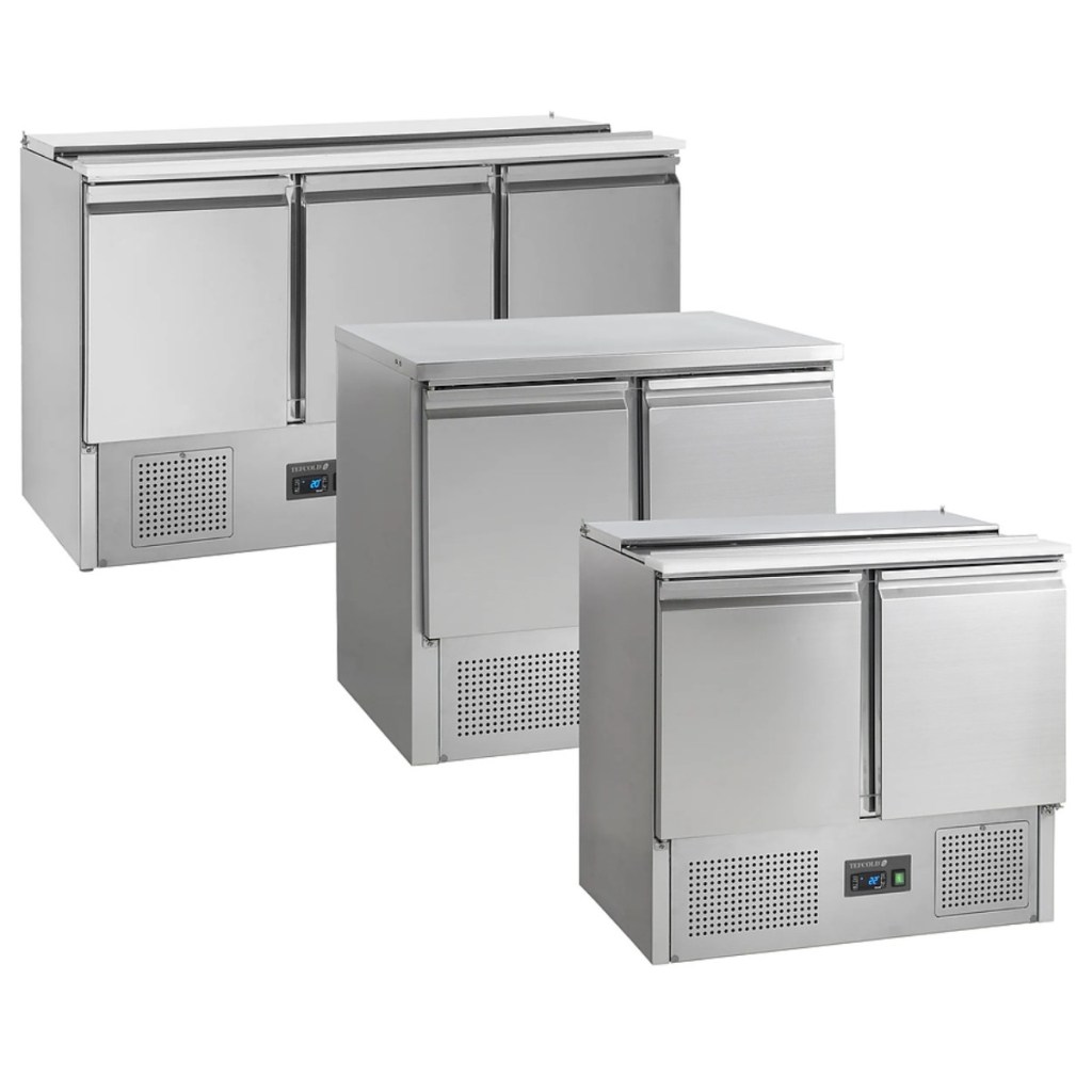 Каталог оборудования Холодильное оборудованиеСтолы охлаждаемыеСтолы холодильные для салатовСтол холодильный для салатов TEFCOLD SA910 Стол холодильный для салатов TEFCOLD SA910 Код товара: 010-357 Поделиться: WhatsAppTelegram СравнитьДобавить в КПВ избранное 0 94 892 ₽ В корзину 0 шт В наличииСамовывоз сегодня бесплатно Взять в кредит Купить в лизинг Получить консультацию в WhatsApp Описание Характеристики Отзывы 0 Стол холодильный для салатов TEFCOLD SA910 — профессиональное оборудование для обработки ингредиентов, приготовления салатов, охлаждения и кратковременного хранения продуктов на предприятиях общественного питания и торговли. Корпус и внутренняя отделка выполнены из нержавеющей стали AISI 304, что обеспечивает долговечность и простоту ухода. Особенности модели: Статическое охлаждение с вентилятором — равномерное поддержание температуры Автоматическое размораживание — поддержка стабильного режима без образования наледи Электронный термостат и градусник — точный контроль температуры Хладагент R600a, подзарядка — 0,068 кг Рабочая поверхность для нарезки и открытый верх под гастроёмкости 2 полки для удобной организации внутреннего пространства Регулируемые по высоте ножки — устойчивость на неровных поверхностях Климатический класс 4 — стабильная работа при температуре до +30 °C Полезный объём: 230 л Размеры полки: 530×325 мм Внутренние размеры камеры: 830×515×500 мм Энергопотребление: 3,12 кВт/сутки Уровень шума: 42 дБ TEFCOLD SA910 — компактный и надёжный холодильный стол для профессиональных кухонь и предприятий общественного питания. Он сочетает рабочую поверхность для нарезки, вместительное охлаждаемое пространство и эффективное управление температурой, обеспечивая удобство работы и сохранность продуктов.Изображение товара, представленного на фото, может отличаться от его фактического вида. Показать все Габаритные размеры900×700×890 ммДиапазон рабочей температурыот +2 до +10 °CРасположение агрегатаНижнее Материал столешницыНержавеющая Тип столаС дверьми Тип двериГлухая Общий объем260 лПолезный объем230 лКоличество дверей2 штРазмер полки530×325 ммНапряжение230 ВМощность0,15 кВтТип охлажденияСтатический Тип оттайкиАвтоматическая ХладагентR600a Габариты в упаковке980×770×1040 ммВес нетто72 кгВес брутто82 кгБрендTefcold Оставить отзыв Еще никто не оставил отзыв на этот товар Похожие товары Перейти в каталог Под заказ 96 524 ₽ Стол холодильный среднетемпературный Polair TD2-G В наличии 64 485 ₽ Стол холодильный среднетемпературный Cooleq S901 Под заказ 85 405 ₽ Стол холодильный среднетемпературный Cooleq SNACK2100TN/600 В наличии 65 229 ₽ Стол холодильный среднетемпературный HURAKAN HKN-GNL2TN С этим товаром покупают В наличии 189 749 ₽ Шкаф морозильный Polair CB114-S Под заказ 64 467 ₽ Витрина холодильная для ингредиентов HICOLD VRTG 1390 1/3 Ранее просмотрено В наличии 49 954 ₽ Ларь морозильный с прямым стеклом Frostor F 500 C серый Под заказ 38 660 ₽ Ларь морозильный с прямым стеклом CRYSPI ЛВН 200 П (СF 200FQ) серый 3 корзины