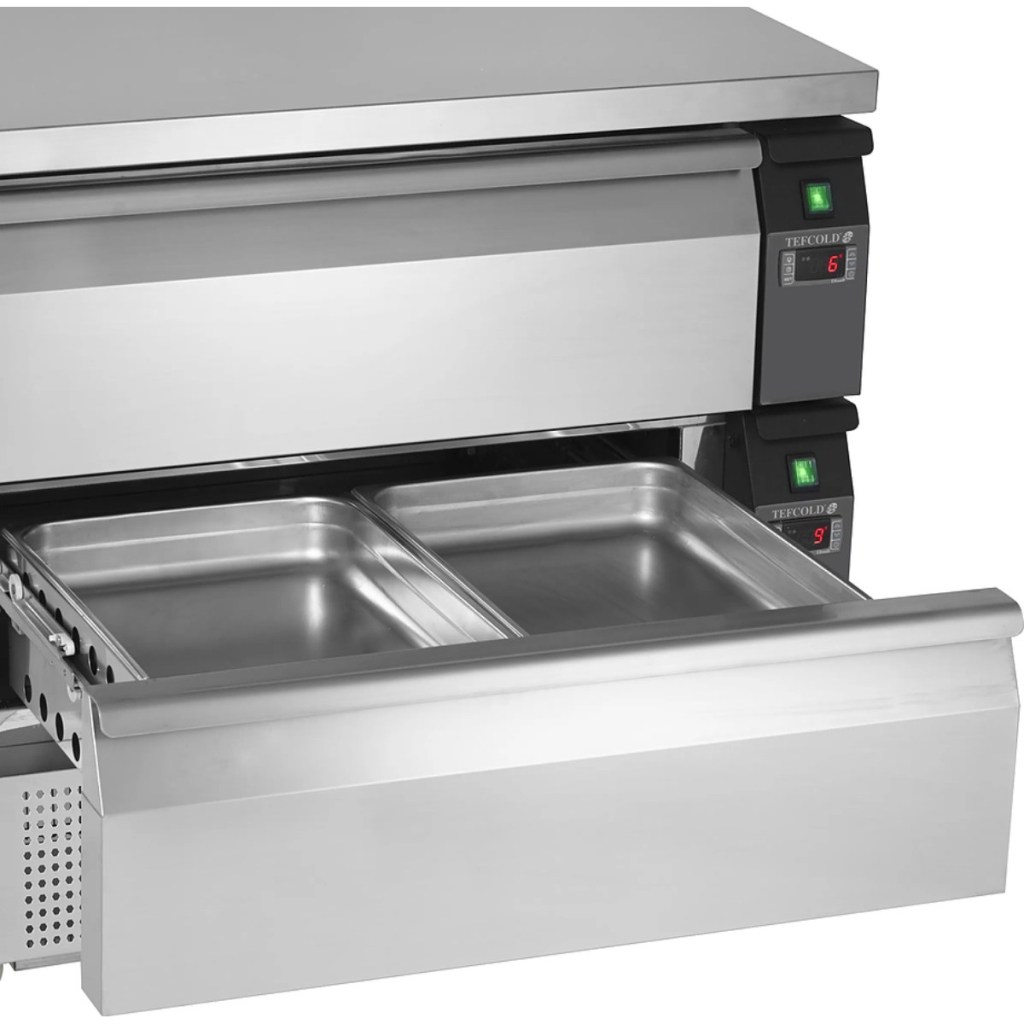 Каталог оборудования Холодильное оборудованиеСтолы охлаждаемыеСтолы холодильные комбинированныеСтол холодильно-морозильный TEFCOLD UNI-DRAWER UD1-2 Стол холодильно-морозильный TEFCOLD UNI-DRAWER UD1-2 Код товара: 010-373 Поделиться: WhatsAppTelegram СравнитьДобавить в КПВ избранное 0 169 675 ₽ В корзину 0 шт В наличииСамовывоз сегодня бесплатно Взять в кредит Купить в лизинг Получить консультацию в WhatsApp Описание Характеристики Отзывы 0 Инструкции 2 Стол холодильно-морозильный TEFCOLD UNI-DRAWER UD1-2 — профессиональное оборудование для обработки ингредиентов и хранения охлажденных и замороженных продуктов на предприятиях общественного питания и торговли. Корпус и внутренняя отделка выполнены из нержавеющей стали SS304, что обеспечивает долговечность и удобство в уходе. Модель оснащена расположенным снизу агрегатным отсеком, столешницей, гастрономированным выдвижным ящиком и кнопочной панелью управления с цифровым дисплеем. Особенности модели: Динамическое охлаждение с равномерным распределением воздуха Электронный контроллер Dixell с цифровой индикацией температуры Автоматическая оттайка Легкое переключение между холодильным и морозильным режимами Символьная индикация работы компрессора и функция самодиагностики 4 поворотные колеса, включая 2 со стопором, для удобства перемещения Экологичный энергоэффективный хладагент R290 Прочные материалы и качественные комплектующие для длительного срока службы Энергоэффективность класса D, климатический класс 5 Формат гастроемкостей GN2/1 Эргономичный и стильный дизайн Температурный режим: от -21 до +4 °C Максимальная температура окружающей среды: 40 °C, влажность до 40% Вместимость гастроемкостей: 2 Общий объем: 78 л, полезный объем: 51 л Энергопотребление: 4,85 кВт/сутки (годовое — 1770 кВт⋅ч) Уровень шума: 54 дБ TEFCOLD UD1-2 — универсальный и надёжный стол для охлаждения и заморозки продуктов с удобным управлением, мобильностью и энергоэффективностью для профессиональных кухонь.Изображение товара, представленного на фото, может отличаться от его фактического вида. Показать все Габаритные размеры905×700×600 ммРасположение агрегатаНижнее Материал столешницыНержавеющая Тип столаС ящиками Общий объем78 лПолезный объем51 лКоличество ящиков1 штТип гастроемкостейGN2/1 Климатический класс5 Уровень шума42 дБНапряжение220 ВРасход электроэнергии в сутки2,21 кВт/сутТип охлажденияДинамический Тип оттайкиАвтоматическая ХладагентR290 Габариты в упаковке1000×800×700 ммВес нетто50 кгВес брутто72 кгБрендTefcold Оставить отзыв Еще никто не оставил отзыв на этот товар Инструкция на TEFCOLD UNI-DRAWER UD1-2.pdfСпецификация на TEFCOLD UNI-DRAWER UD1-2.pdf Похожие товары Перейти в каталог Под заказ 79 461 ₽ Стол холодильный среднетемпературный HiCold SN 1/TN W Под заказ 112 370 ₽ Стол холодильный среднетемпературный Abat СХС-70 с бортом (ящики 1/2) Под заказ 104 947 ₽ Стол холодильный среднетемпературный Abat СХС-70 с бортом (дверь) С этим товаром покупают В наличии 397 290 ₽ Шкаф холодильный для хлебопекарных производств Polair CS107 Bakery Br (Тип 1) В наличии 162 910 ₽ Плита индукционная Аbat КИП-47Н-5,0 Ранее просмотрено В наличии 7 749 ₽ Кипятильник HURAKAN HKN-HVN30M Под заказ 160 011 ₽ Стол с охлаждаемой поверхностью HiCold GN-SO 111/TN Под заказ 140 854 ₽ Шкаф морозильный МХМ Капри 1,12НВ В наличии 88 105 ₽ Моноблок холодильный низкотемпературный Polair MB109S GREEN Под заказ 155 876 ₽ Бункер для льда Brema Bin 110 (для G280-G510) В наличии 63 864 ₽ Шкаф холодильный МХМ Капр