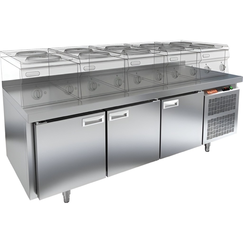 Каталог оборудования Холодильное оборудованиеСтолы охлаждаемыеСтолы холодильные под тепловое оборудованиеСтол морозильный HiCold SN 111/BT LT под тепловое оборудование Стол морозильный HiCold SN 111/BT LT под тепловое оборудование Код товара: 065-159 Поделиться: WhatsAppTelegram СравнитьДобавить в КПВ избранное 0 168 561 ₽ В корзину 0 шт Под заказСамовывоз сегодня бесплатно Взять в кредит Купить в лизинг Получить консультацию в Max Описание Характеристики Отзывы 0 Инструкции 2 Стол морозильный HiCold SN 111/BT LT под тепловое оборудование — это профессиональное оборудование, разработанное для предприятий общественного питания и торговли. Он сочетает в себе функцию заморозки и хранения продуктов, полуфабрикатов и мороженого, а также возможность установки теплового оборудования прямо на рабочую поверхность. Под столешницей расположен ДСП-лист, который придаёт дополнительную жёсткость конструкции и предотвращает проникновение тепла в морозильную камеру. Такое решение позволяет эффективно использовать рабочее пространство и повышает производительность труда на кухне. Особенности: Цельнозаливной корпус из нержавеющей стали с теплоизоляцией 50 мм — прочность, герметичность и высокая энергоэффективность. Электронный блок управления с несколькими режимами оттаивания — точность и надёжность в эксплуатации. Экономичный компрессор нового поколения — снижение энергопотребления. Вентилятор увеличенной мощности и система принудительной вентиляции — равномерное охлаждение по всему объему. Интеллектуальная система размораживания и термическое выпаривание конденсата — минимизация обслуживания. Петли-доводчики и контурный электронагреватель (ПЭН) — плотное закрывание дверей и защита от примерзания. Регулируемые ножки по высоте — устойчивая установка на любой поверхности. Удобный доступ к агрегату — простота сервисного обслуживания. Допустимая нагрузка на полку — до 50 кг. Высота борта столешницы — 50 мм. Уверенная работа при температуре окружающей среды от +12 до +32 °C. HiCold SN 111/BT LT под тепловое оборудование — это универсальное и надёжное решение для профессиональной кухни. Он не только обеспечивает длительное хранение продуктов в стабильном температурном режиме, но и позволяет разместить на рабочей поверхности тепловое оборудование, делая процесс приготовления более удобным и эффективным.Изображение товара, представленного на фото, может отличаться от его фактического вида. Показать все Габаритные размеры1835×600×675 ммДиапазон рабочей температурыот -18 до -10 °CМатериал столешницыНержавеющая Расположение агрегатаБоковое Объём320 лТип столаС дверьми Тип двериГлухая Количество дверей3 штРазмер полки430×325 ммНапряжение220 ВМощность0,61 кВтТип охлажденияДинамический Тип оттайкиАвтоматическая Габариты в упаковке1935×700×775 ммВес нетто109 кгВес брутто159 кгБрендHicold Оставить отзыв Еще никто не оставил отзыв на этот товар Паспорт на HICOLD SN 111BT LT.pdfДекларация о соответствии.pdf Похожие товары Перейти в каталог В наличии 128 777 ₽ Стол морозильный Cooleq GN3200BT с бортом Под заказ 169 732 ₽ Стол морозильный Abat СХН-70-02 без борта (дверь, дверь, дверь) С этим товаром покупают В наличии 143 021 ₽ Шкаф холодильный универсальный Polair CV 110-S Под заказ 77 531 ₽ Газовый лавовый гриль Abat ГЛК-40Н Ранее просмотрено Под заказ 169 011 ₽ Стол морозильный HiCold GN 111/BT LT под тепловое оборудование Под заказ 193 492 