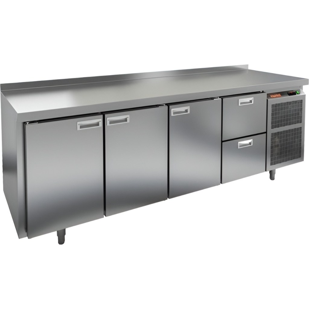 Каталог оборудования Холодильное оборудованиеСтолы охлаждаемыеСтолы холодильные среднетемпературныеСтол холодильный среднетемпературный HiCold SN 1112/TN Стол холодильный среднетемпературный HiCold SN 1112/TN Код товара: 001-323 Поделиться: WhatsAppTelegram СравнитьДобавить в КПВ избранное 0 197 541 ₽ В корзину 0 шт Под заказСамовывоз сегодня бесплатно Взять в кредит Купить в лизинг Получить консультацию в WhatsApp Описание Характеристики Отзывы 0 Инструкции 2 Стол холодильный среднетемпературный HiCold SN 1112/TN — это профессиональное оборудование, предназначенное для кратковременного хранения скоропортящихся продуктов и напитков, а также удобной подготовки ингредиентов на предприятиях общественного питания и торговли. Модель сочетает функциональность, надежность и эргономичный дизайн. Ключевые особенности: 3 распашные двери и 2 выдвижные секции обеспечивают удобный доступ к хранимым продуктам. Электронная панель управления — простое и точное регулирование температуры. Автоматические доводчики дверей с фиксатором в открытом положении — для комфорта при загрузке и выгрузке. Легкозаменяемые магнитные уплотнители обеспечивают надежную герметичность. Регулируемые по высоте ножки позволяют адаптировать стол к любому рабочему пространству. Корпус и столешница из нержавеющей стали — долговечность, устойчивость к коррозии и простота в уходе. Толщина теплоизоляции, столешницы и борта — 50 мм — оптимальное сохранение температуры и жесткость конструкции. Размеры полок: 430х325 мм, в комплекте — 3 полки. Рабочий температурный режим при температуре окружающей среды от 12 до 37 °C. HiCold SN 1112/TN — это многофункциональный холодильный стол, идеально подходящий для профессиональной кухни. Он сочетает в себе высокое качество материалов, продуманную конструкцию и удобство эксплуатации, что делает его надежным помощником в интенсивной повседневной работе.Изображение товара, представленного на фото, может отличаться от его фактического вида. Показать все Габаритные размеры2280×600×850 ммДиапазон рабочей температурыот -2 до +10 °CРасположение агрегатаБоковое Материал столешницыНержавеющая Тип столаС дверьми и ящиками Тип двериГлухая Объём570 лКоличество дверей3 штКоличество полок3 штКоличество ящиков2 штРазмер полки430×325 ммНапряжение220 ВМощность0,48 кВтТип охлажденияДинамический Тип оттайкиАвтоматическая СтолешницаС бортом Вес нетто176 кгВес брутто196 кгБрендHicoldВсе холодильные столы HicoldВсе оцинкованные холодильные столы Оставить отзыв Еще никто не оставил отзыв на этот товар Паспорт на HICOLD SN 1112/TN.pdfДекларация о соответствии.pdf Похожие товары Перейти в каталог Под заказ 258 741 ₽ Стол холодильный среднетемпературный HiCold SN 1133/TN В наличии 132 149 ₽ Стол холодильный среднетемпературный Cooleq GN4100TN В наличии 139 583 ₽ Стол холодильный среднетемпературный Cooleq GN4200TN с бортом В наличии 318 935 ₽ Стол холодильный среднетемпературный TEFCOLD BK310 С этим товаром покупают Под заказ 145 398 ₽ Шкаф комбинированный МХМ ШХК - 800 В наличии 82 699 ₽ Витрина холодильная для ингредиентов TEFCOLD VK38-120 Под заказ 95 465 ₽ Жарочная поверхность Аbat АКО-80/1Н-С-02 Ранее просмотрено Под заказ 184 491 ₽ Стол холодильный среднетемпературный HiCold GNE 112/TN М В наличии 260 901 ₽ Стол холодильный среднетемпературный HiCold GN 11122 BR2 TN