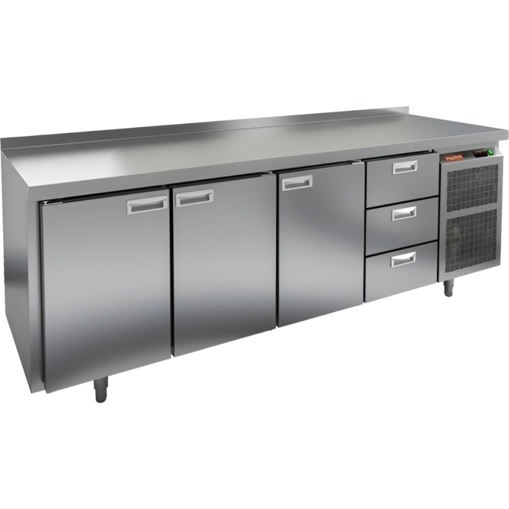 Каталог оборудования Холодильное оборудованиеСтолы охлаждаемыеСтолы морозильные низкотемпературныеСтол морозильный HiCold BN 1113/BT Стол морозильный HiCold BN 1113/BT Код товара: 062-073 Поделиться: WhatsAppTelegram СравнитьДобавить в КПВ избранное 0 251 451 ₽ В корзину 0 шт В наличииСамовывоз сегодня бесплатно Взять в кредит Купить в лизинг Получить консультацию в WhatsApp Описание Характеристики Отзывы 0 Инструкции 2 Стол морозильный HiCold BN 1113/BT предназначен для заморозки и хранения скоропортящихся продуктов и напитков на предприятиях общественного питания и торговли. Он сочетает в себе удобство использования и высокую эффективность. Управление осуществляется с помощью простой и понятной электронной панели. Конструкция корпуса и столешницы выполнена из прочной нержавеющей стали, что обеспечивает долговечность и гигиеничность оборудования. В комплект входят 3 полки, что позволяет удобно организовать внутреннее пространство для хранения различных продуктов. Особенности: Автоматические доводчики дверей с фиксацией в открытом положении — для комфортной загрузки и выгрузки продуктов; Легкозаменяемые магнитные уплотнители — обеспечивают плотное закрытие дверей и снижают теплопотери; Регулируемые по высоте ножки — позволяют устанавливать стол на неровных поверхностях; Толщина столешницы — 50 мм; Толщина теплоизоляции — 50 мм — для сохранения стабильной температуры; Высота борта — 50 мм — предотвращает затекание жидкости и обеспечивает чистоту на рабочем месте. Морозильный стол HiCold BN 1113/BT — это надежное и практичное оборудование, обеспечивающее качественное хранение продуктов и удобство в ежедневной работе персонала кухни.Изображение товара, представленного на фото, может отличаться от его фактического вида. Показать все Габаритные размеры2280×500×850 ммДиапазон рабочей температурыот -18 до -10 °CРасположение агрегатаБоковое Материал столешницыНержавеющая Тип столаС дверьми и ящиками Тип двериГлухая Объём460 лКоличество дверей3 штКоличество полок3 штКоличество ящиков3 штРазмер полки330×325 ммНапряжение220 ВМощность0,75 кВтТип охлажденияДинамический Тип оттайкиАвтоматическая СтолешницаС бортом Вес нетто135 кгВес брутто155 кгБрендHicoldВсе морозильные столы HicoldВсе морозильные столы с бортом Оставить отзыв Еще никто не оставил отзыв на этот товар Паспорт на HICOLD BN 1113/BT.pdfДекларация о соответствии.pdf Ранее просмотрено Под заказ 24 471 ₽ Стол производственный Abat СПРП-7-5 Под заказ 93 771 ₽ Стол морозильный HiCold SN 1/BT W Под заказ 142 256 ₽ Стол морозильный Kayman KСМ-112/70 В наличии 171 649 ₽ Стол холодильный для сэндвичей TEFCOLD SS7200 Под заказ 272 961 ₽ Стол морозильный HiCold GN 1113 BR2 BT