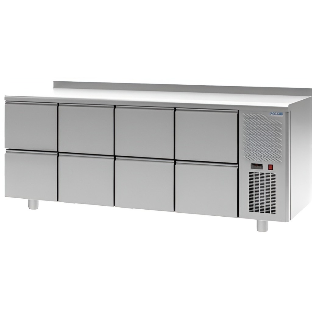 Каталог оборудования Холодильное оборудованиеСтолы охлаждаемыеСтолы морозильные низкотемпературныеСтол морозильный низкотемпературный Polair TB4GN-2222-G Стол морозильный низкотемпературный Polair TB4GN-2222-G Код товара: 062-495 Поделиться: WhatsAppTelegram СравнитьДобавить в КПВ избранное 0 301 395 ₽ В корзину 0 шт Под заказСамовывоз сегодня бесплатно Взять в кредит Купить в лизинг Получить консультацию в WhatsApp Описание Характеристики Отзывы 0 Стол морозильный низкотемпературный Polair TB4GN-2222-G предназначен для хранения продуктов и обработки ингредиентов на рабочей поверхности на предприятиях общественного питания и торговли. Цельнозаливные корпус и двери выполнены из стали, что обеспечивает высокую механическую прочность, надежную термоизоляцию, герметичность и долговечность конструкции. Оборудование рассчитано на работу при температуре окружающей среды до 32 °С и относительной влажности воздуха до 60%. Особенности: Автоматическая оттайка испарителя с помощью ТЭНов и система испарения конденсата. Динамическое охлаждение обеспечивает равномерное распределение температуры. Электронный терморегулятор для точного поддержания температурного режима. Двухъярусный агрегат, полностью выдвигаемый для удобного обслуживания. Все элементы холодильной системы вынесены за пределы охлаждаемого пространства, что увеличивает полезный объем. Экологичный хладагент R290. ПЭН обогрева дверного проема предотвращает образование наледи. ТЭН поддона воздухоохладителя защищает от замерзания конденсата. Класс защиты IP24, защита от попадания влаги. Регулируемые по высоте ножки для устойчивой установки на неровных поверхностях. Толщина столешницы — 40 мм, стенок корпуса — 43 мм. Высота борта — 60 мм предотвращает стекание жидкости. Тип полок: Gastronorm GN 1/1, стандарт для профессиональных кухонь. Polair TB4GN-2222-G — надежный и удобный морозильный стол для профессиональных кухонь, который обеспечивает удобную обработку ингредиентов и надежное хранение замороженных продуктов при стабильной температуре.Изображение товара, представленного на фото, может отличаться от его фактического вида. Показать все Габаритные размеры2060×705×910 ммДиапазон рабочей температурыдо -18 °CРасположение агрегатаБоковое Материал столешницыНержавеющая Тип столаС ящиками Объём600 лТип гастроемкостейGN 1/1 Количество ящиков8 штНапряжение220 ВМощность0,6 кВтТип охлажденияДинамическое Тип оттайкиАвтоматическая ХладагентR290 СтолешницаС бортом Вес нетто165 кгВес брутто195 кгБрендPolairВсе морозильные столы PolairВсе морозильные столы с бортом Оставить отзыв Еще никто не оставил отзыв на этот товар Ранее просмотрено Под заказ 600 737 ₽ Сплит-система холодильная низкотемпературная Belluna Frost P314 (R410a) Под заказ 220 500 ₽ Промо витрина Carboma PF11-12 VM 1,25-2
