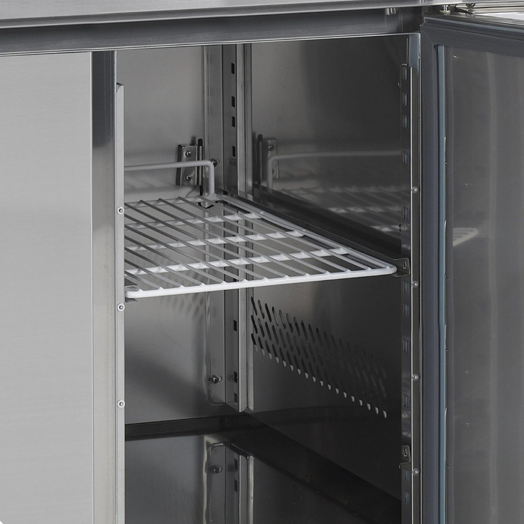 Каталог оборудования Холодильное оборудованиеСтолы охлаждаемыеСтолы морозильные низкотемпературныеСтол морозильный TEFCOLD CF7310/-SP Стол морозильный TEFCOLD CF7310/-SP Код товара: 066-712 Поделиться: WhatsAppTelegram 0 Цена по запросу Получить консультацию в WhatsApp Описание Характеристики Отзывы 0 Инструкции 4 Стол морозильный TEFCOLD CF7310/-SP — профессиональное оборудование, объединяющее рабочую поверхность и морозильную камеру. Предназначен для приготовления, охлаждения, замораживания и хранения продуктов, полуфабрикатов, блюд и напитков. Модель оснащена встроенным агрегатом справа, термометром, 3 глухими дверьми, 3 решетчатыми полками GN1/1 и 4 регулируемыми ножками. Корпус, столешница и внутренняя отделка выполнены из высококачественной нержавеющей стали SS304. Особенности модели: Динамическое охлаждение — равномерное распределение холода Электронный контроллер — точное управление температурой Автоматическая разморозка — стабильная работа без наледи Самозакрывающиеся двери Съёмная столешница без борта — удобство уборки и обслуживания Климатический класс 4 — работа при температуре до +30 °C Класс энергоэффективности D Хладагент R290, масса — 0,09 кг Размер полок: GN1/1 Полезный объём: 402 л Общий объём: 417 л Внутренние размеры: 1337 × 530 × 589 мм Энергопотребление: 8,76 кВт/сутки (годовое — 3197 кВт⋅ч/год) Частота: 50 Гц Уровень шума: 42 дБ(А) TEFCOLD CF7310/-SP — надёжный и функциональный морозильный стол для профессиональных кухонь. Он сочетает рабочую поверхность с вместительной морозильной камерой, обеспечивая удобство работы, долговременное хранение продуктов и эффективное управление температурой.Изображение товара, представленного на фото, может отличаться от его фактического вида. Показать все Габаритные размеры1795×700×980 ммДиапазон рабочей температурыот -20 до -10 °CРасположение агрегатаБоковое Материал столешницыНержавеющая Тип столаС дверьми Тип двериГлухая Общий объем417 лПолезный объем402 лТип гастроемкостейGN1/1 Количество дверей3 штРазмер полки530×325 ммНапряжение220 ВМощность0,57 кВтРасход электроэнергии в сутки6,95 кВт/сутТип охлажденияДинамический Тип оттайкиАвтоматическая Климатический класс4 ХладагентR290 СтолешницаБез борта Уровень шума42 дБГабариты в упаковке1830×750×1010 ммВес нетто152 кгВес брутто162 кгБрендTefcoldВсе морозильные столы без борта Оставить отзыв Еще никто не оставил отзыв на этот товар Брошюра на TEFCOLD CF7310-SP.pdfИнструкция на TEFCOLD CF7310-SP.pdfВзрыв-схема на TEFCOLD CF7310-SP.pdfДекларация о соответствии.pdf Похожие товары Перейти в каталог Под заказ 125 817 ₽ Стол морозильный HURAKAN HKN-GN3BT Под заказ 166 404 ₽ Стол морозильный Abat СХН-70-02 без борта (дверь, дверь, дверь) С этим товаром покупают В наличии 201 690 ₽ Шкаф морозильный Полюс Carboma F1400 Ранее просмотрено Под заказ 194 931 ₽ Стол холодильный барный HiCold SNG 111 HT V Под заказ 108 891 ₽ Стол морозильный HiCold SN 1/BT О