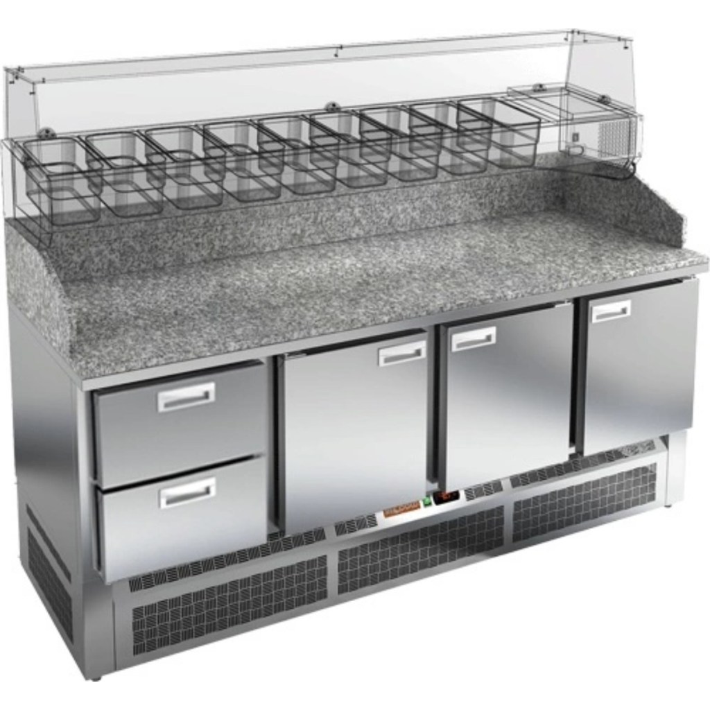 Каталог оборудования Холодильное оборудованиеСтолы охлаждаемыеСтолы холодильные для пиццыСтол холодильный для пиццы HiCold PZE3-2111/GN камень Стол холодильный для пиццы HiCold PZE3-2111/GN камень Код товара: 064-992 Поделиться: WhatsAppTelegram СравнитьДобавить в КПВ избранное 0 302 122 ₽ В корзину 0 шт Под заказСамовывоз сегодня бесплатно Взять в кредит Купить в лизинг Получить консультацию в WhatsApp Описание Характеристики Отзывы 0 Стол холодильный для пиццы HiCold PZE3-2111/GN камень предназначен для использования на предприятиях общественного питания и торговли. Он идеально подходит для раскатки теста, подготовки ингредиентов и кратковременного хранения скоропортящихся продуктов и напитков. Благодаря совмещению охлаждаемого объёма и просторной рабочей поверхности, стол значительно упрощает и ускоряет процесс приготовления блюд. Корпус изготовлен из нержавеющей стали, а прочная гранитная столешница устойчива к механическим и температурным нагрузкам. Особенности модели: Корпус: нержавеющая сталь — прочный, гигиеничный и долговечный Столешница: гранит — устойчива к царапинам, ударам и температурным нагрузкам Охлаждение: динамическое для равномерного поддержания температуры Оттайка: автоматическая — удобство и экономия времени Панель управления: электронная — точная настройка температуры Ножки: регулируемые по высоте — устойчивость на неровной поверхности Двери: 3 глухие дверцы с автоматическим доводчиком и фиксатором открытого положения Ящики: 2 выдвижных ящика — удобное хранение ингредиентов Уплотнители: легкозаменяемые магнитные — герметичность и простота обслуживания Толщина теплоизоляции: 50 мм — сохранение холода и энергоэффективность Рабочая поверхность: глубина 680 мм — удобство работы HiCold PZE3-2111/GN камень — профессиональный стол для пиццы, сочетающий в себе эргономику, долговечность и удобство, что делает его отличным выбором для интенсивной работы на кухне.Изображение товара, представленного на фото, может отличаться от его фактического вида. Показать все Габаритные размеры1970×600×1050 ммДиапазон рабочей температурыот +2 до +10 °CРасположение агрегатаНижнее Материал столешницыГранитная Тип столаС дверьми и ящиками Тип двериГлухая Объём505 лКоличество дверей2 штКоличество ящиков3 штРазмер полки530×325 ммНапряжение220 ВМощность0,5 кВтТип охлажденияДинамическое Тип оттайкиАвтоматическая Габариты в упаковке2000×850×1180 ммВес нетто240 кгВес брутто300 кгБрендHicoldВсе холодильные столы для пиццы HicoldВсе нержавеющие холодильные столы для пиццы Оставить отзыв Еще никто не оставил отзыв на этот товар Ранее просмотрено Цена по запросу Витрина морозильная Иней LIDA KUB M 3,75 Под заказ 343 342 ₽ Стол холодильный для пиццы HiCold PZE3-222/GN камень Под заказ 299 692 ₽ Стол холодильный для пиццы HiCold PZ2-33GN (1/6) камень