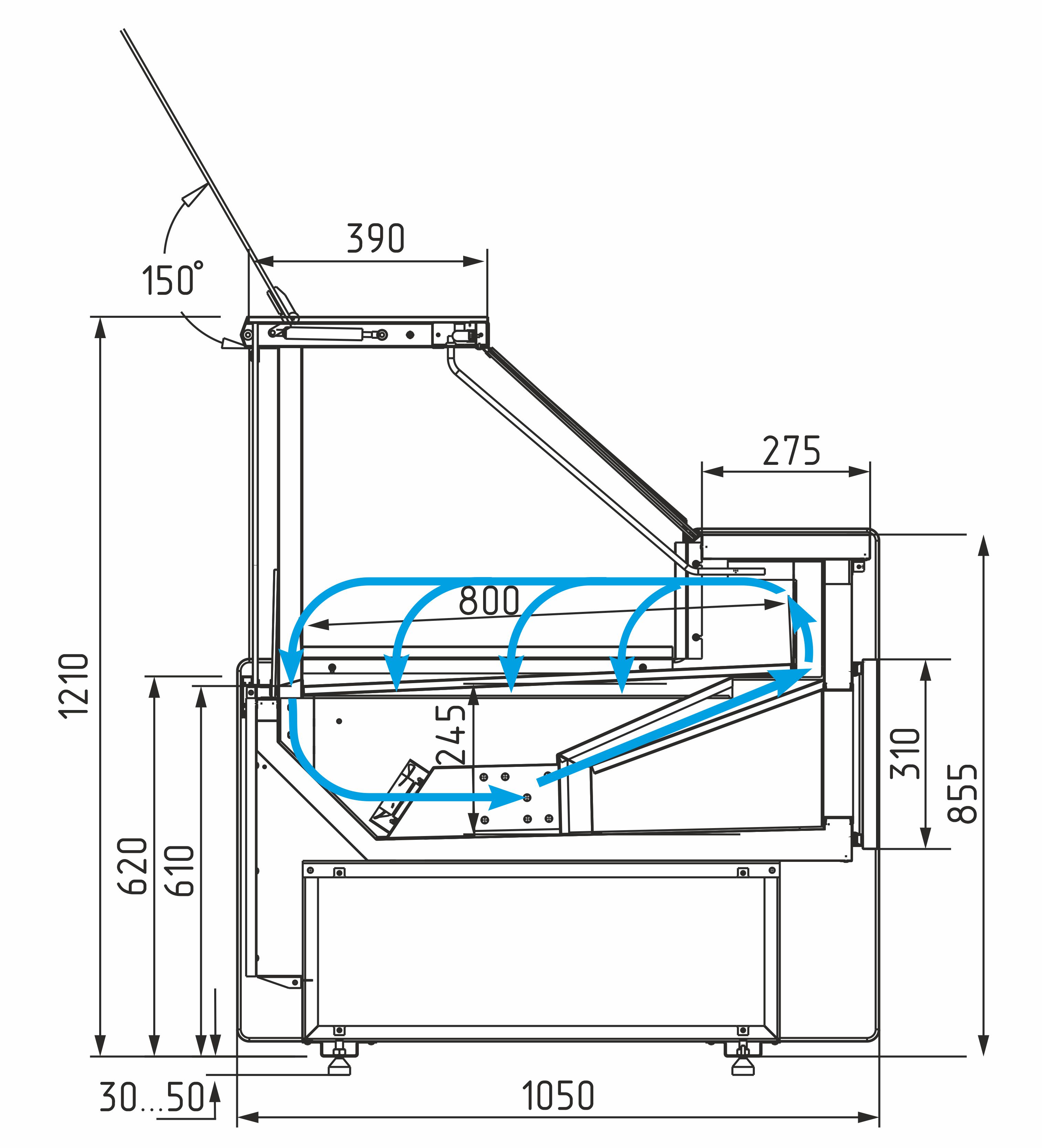 Отбойник холода — снижает потери температуры при открытии витрины.