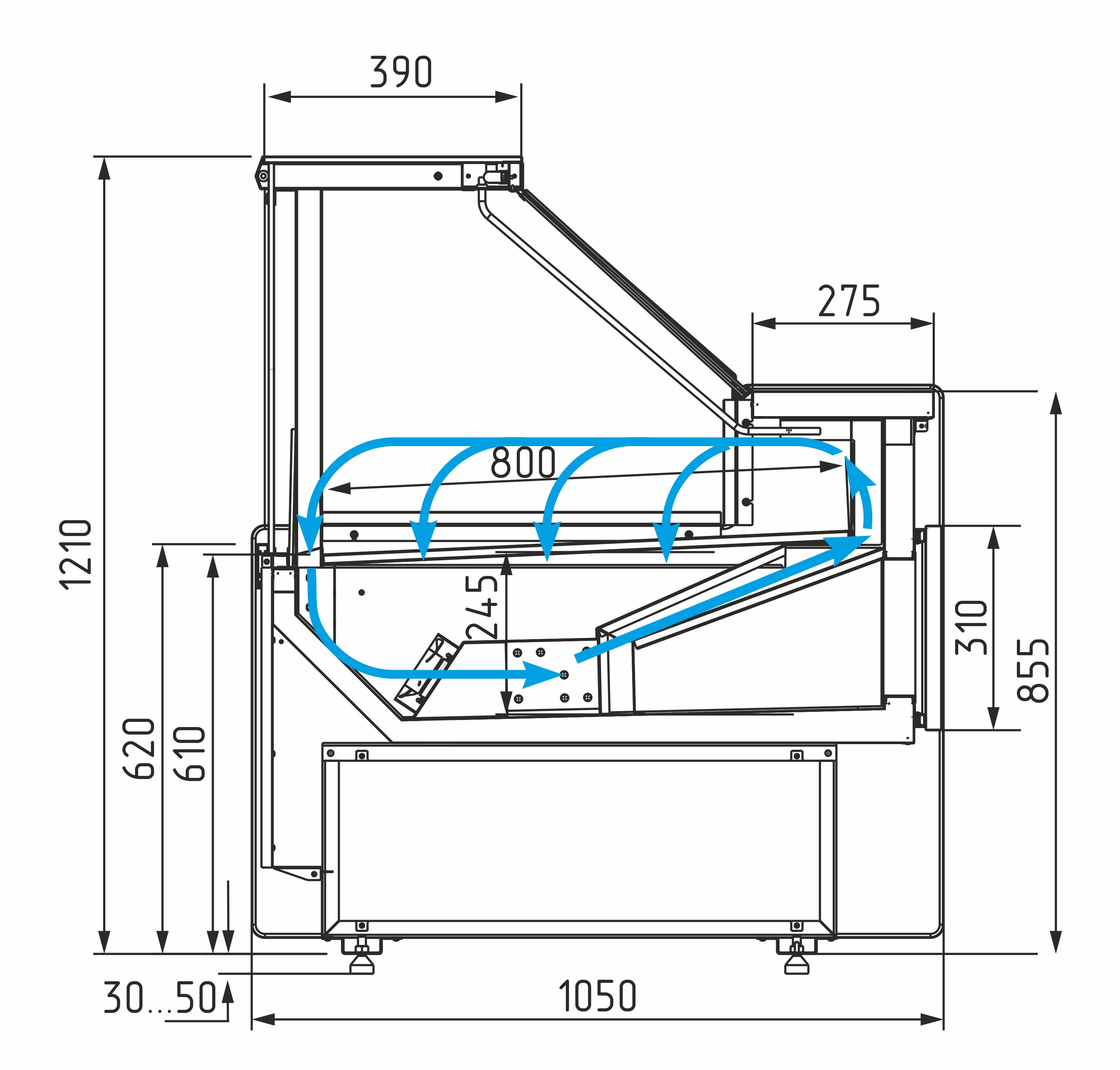 Отбойник холода — снижает потери температуры при открытии витрины.