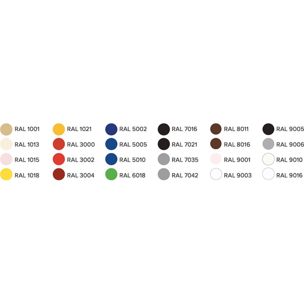 Модель доступна в 13 стандартных цветовых решениях по палитре RAL, что позволяет гармонично интегрировать витрину в любой интерьер.