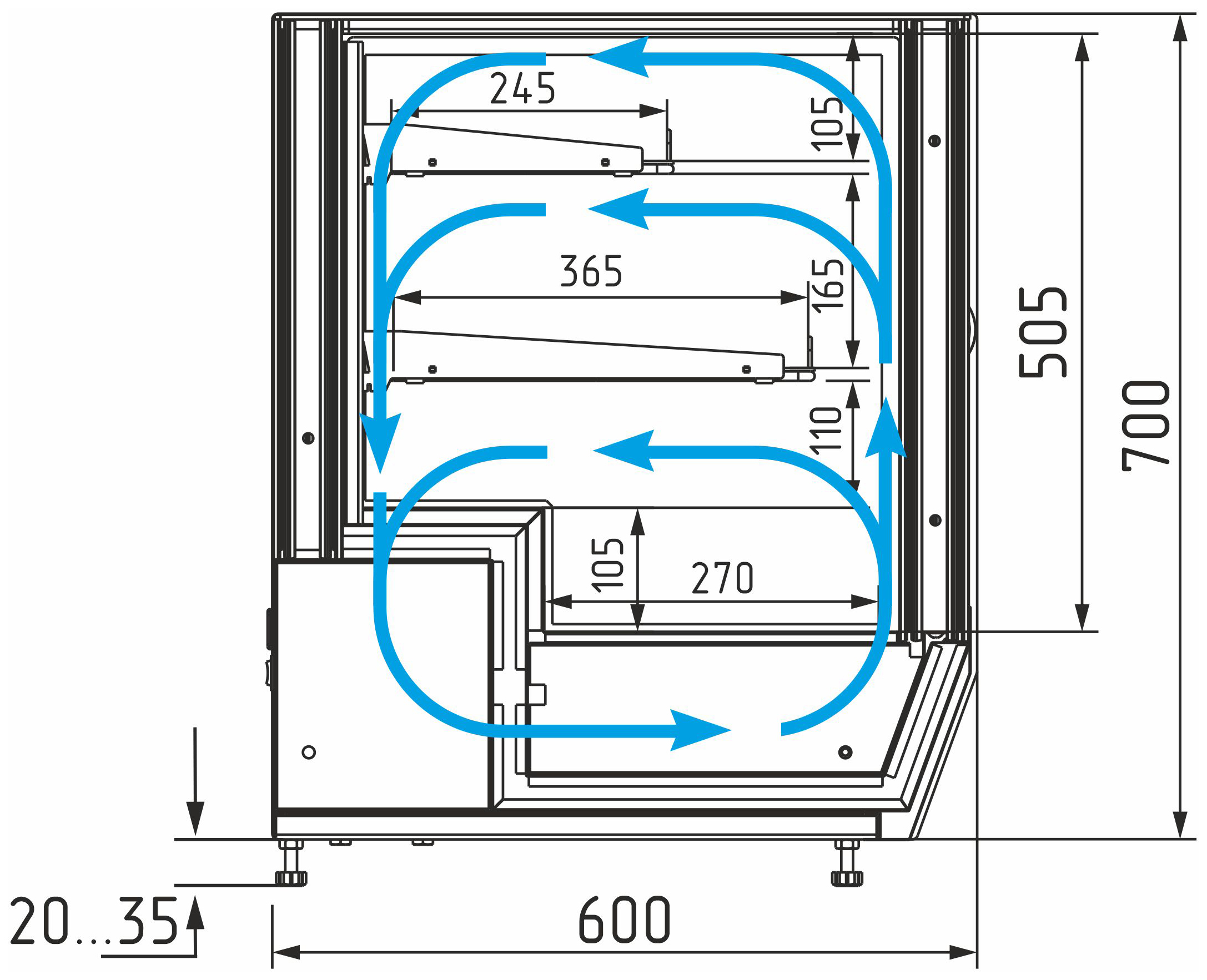 Каталог оборудования Холодильное оборудованиеВитрины настольныеВитрина холодильная настольная Carboma AC59 VM 0,7-1 (слайдер) (0430) Витрина холодильная настольная Carboma AC59 VM 0,7-1 (слайдер) (0430) Код товара: 063-685 Поделиться: WhatsAppTelegram СравнитьДобавить в КПВ избранное 0 106 741 ₽ В корзину 0 шт Под заказСамовывоз сегодня бесплатно Взять в кредит Купить в лизинг Получить консультацию в WhatsApp Описание Характеристики Отзывы 0 Инструкции 2 Витрина холодильная настольная Carboma AC59 VM 0,7-1 (слайдер) (0430) — это универсальная охлаждаемая витрина для демонстрации и кратковременного хранения кондитерских изделий, десертов, салатов и напитков. Идеально подходит для небольших кафе, баров и заведений общественного питания. Модель оснащена закалёнными боковыми стеклопакетами, раздвижными фронтальными и задними дверцами, а также двумя охлаждаемыми полками-решётками с ограничителями. Может устанавливаться на столешницу или встраиваться в барную стойку. Корпус выполнен из стали с ППУ-теплоизоляцией, а рабочая поверхность — из нержавеющей стали. Ключевые особенности: Динамическая система охлаждения — равномерное распределение температуры Компрессор европейского производства — высокая надёжность Электронный блок управления Carel — точный контроль температурного режима Выпариватель конденсата — исключает необходимость ручного слива Возможность установки полок под углом 5° — улучшенная презентация Фронтальные и задние раздвижные дверцы — удобный доступ с обеих сторон Боковая LED-подсветка — подчёркивает структуру десертов и изделий Современный кубический дизайн — стильный внешний вид Регулируемые ножки-опоры — устойчивость на любых поверхностях Настольное или встраиваемое размещение — гибкость установки Стабильный температурный режим — для безопасного хранения продуктов Глубина нижней зоны выкладки: 270 мм Глубина полок: 365 мм (верхняя) / 245 мм (нижняя) Длина нижнего поддона: 666 мм Максимальная высота выкладки продуктов: нижний поддон — 150 мм, полки — 100 мм Температура окружающей среды: от 12 до 25 °C Относительная влажность воздуха: до 60% Carboma AC59 VM 0,7-1 (слайдер) (0430) — это надёжная и эргономичная охлаждаемая витрина с удобным доступом с обеих сторон, которая обеспечит качественную демонстрацию и сохранность продукции в кафе, барах и точках продаж.Изображение товара, представленного на фото, может отличаться от его фактического вида. Показать все Габаритные размеры700×600×735 ммДиапазон рабочей температурыот +4 до +10 °CДлина700 ммГлубина600 ммВысота735 ммРазмещениеГоризонтальная Площадь выкладки0,56 м²Полезный объем витрины0,06 м³Тип охлажденияДинамическое Климатический класс3 ХладагентR290, R600a Напряжение220 ВЭнергопотребление в сутки4 кВтКоличество полок2 штГабариты в упаковке850×750×890 ммВес нетто78 кгВес брутто86 кгБрендПолюсВсе витрины настольные CarbomaВсе холодильные настольные витриныВсе стеклянные настольные витрины Оставить отзыв Еще никто не оставил отзыв на этот товар Брошюра на Carboma AMRA AC59 VM.pdfСхема Carboma AMRA AC59 VM 0,7-1 Slider.jpg Похожие товары Перейти в каталог Под заказ 151 600 ₽ Витрина кондитерская Carboma K70 VM 1,3-12 Light Паттерн (0106 Седой дуб) Под заказ 163 161 ₽ Витрина кондитерская HiCold VRC 350 Black Под заказ 213 100 ₽ Витрина кондитерская Carboma KC70 VV 1,3-1 Standard цвет по схеме стандарт Под заказ 137 400 ₽ Витрина кондитерская Carboma K70 VM 0,9-1 Light Паттерн (0110 Мариель) В наличии 165 249 ₽ Витрина кондите